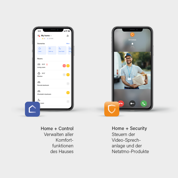 Es können also mit einer einzigen App sämtliche wichtige Funktionen und der Komfort des Hauses verwaltet und gesteuert werden. Falls das System auch Sicherheitsprodukte von Netatmo beinhaltet, wie beispielsweise Kameras oder eine vernetzte Video-Türsprechanlage, steht zusätzlich die App Home + Security zur Verfügung.